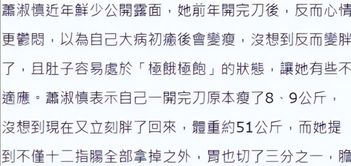 如今的萧淑慎,身处病痛的暗影里,困在一段走不出去的婚配里,文娱职业简直归零,也曾的好友和同业大多一经走散。