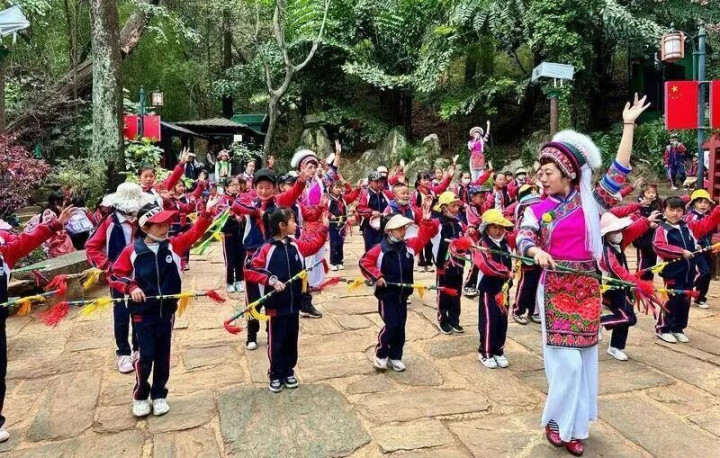 在蝴蝶泉边开展的白族打跳体验和白族霸王鞭舞教训行为,如今的蝴蝶泉边,已成为传承民族文化、开展文化同样的长途地标。