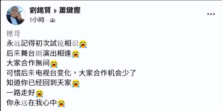 亚视忠臣刘锡贤也回忆两东说念主初识到其后的相助,直言会永远铭记这位老一又友。能够让同业在他离开时这么集体怀念,某种历程上,也阐明萧键铿在圈内留住的,从来不仅仅作品,还有作念东说念主作念事的重量。