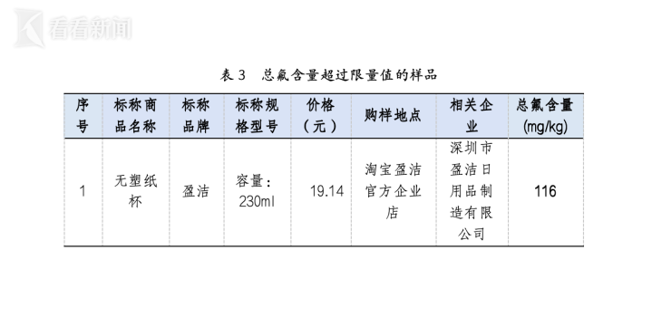1、铅、砷等重金属含量、荧光性物质、特定迁移总量及邻苯二甲酸酯迁移量等均未检出,符合国家标准要求。1款纸杯的3-氯-1,2-丙二醇残留量超出限量值三倍(GB4806.8-2022中限量要求为12μg/L),存在安全风险。