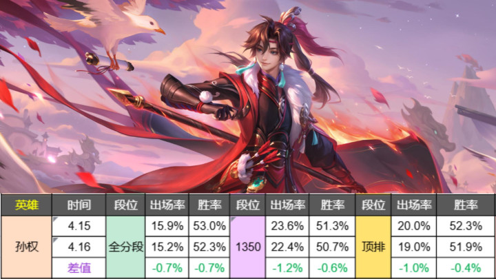 本次孙权转机后数据变化并不是很大,最高降幅0.7%,巅峰赛0.6%,属于能袭取的范畴内。