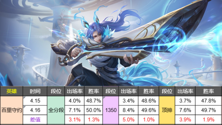 出场率各分段齐险些是翻倍,胜率最热潮幅1.9%,只是是移速方面的转机就有这样高的数据涨幅,守约的后劲照旧挺大的。
