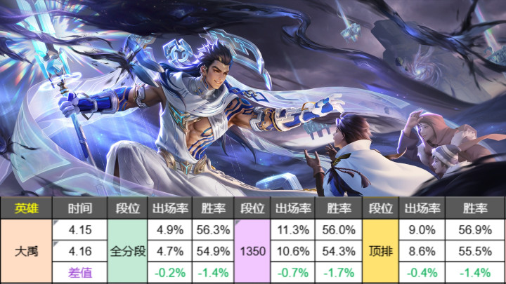 不外大禹的情况和元流法师相同,因为蓝本的数据太豪华,导致哪怕稳重了1.7%的胜率,也曾是扶持榜的三榜第一,54%-55%的胜率也曾是许多好汉可望不可即的。